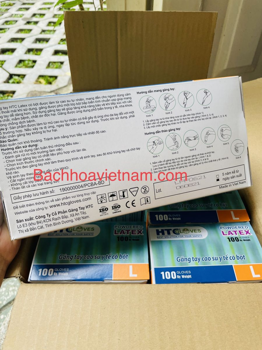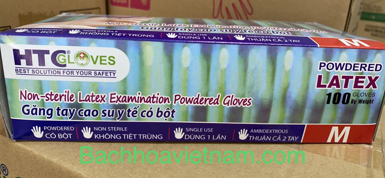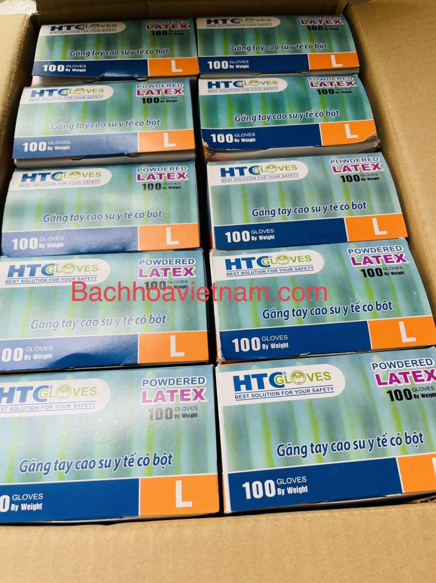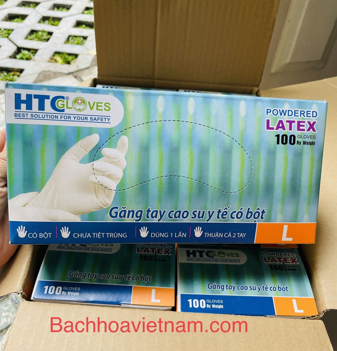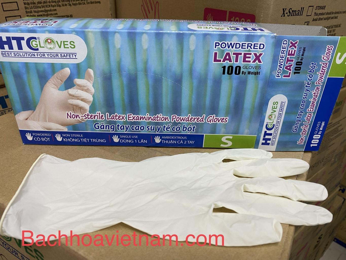 Găng tay y tế CÓ BỘT Latex HTC Gloves màu trắng 1 hộp 100 chiếc (50 đôi)