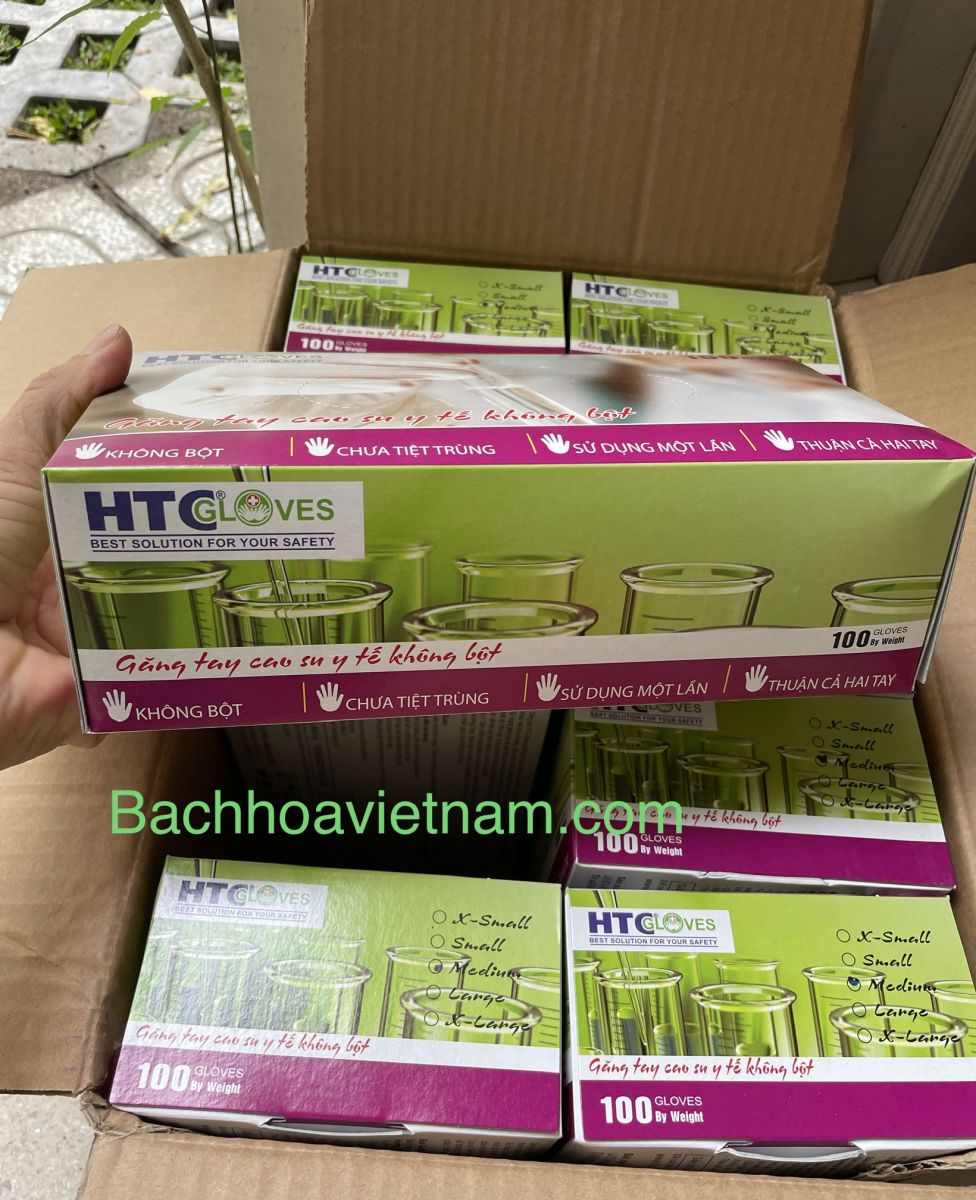 Găng tay y tế HTC Gloves latex không bột được sử dụng trong khám chữa bệnh, nha khoa, chăm sóc sắc đẹp. Giúp bảo vệ đôi tay và phòng các bệnh truyền nhiễm.