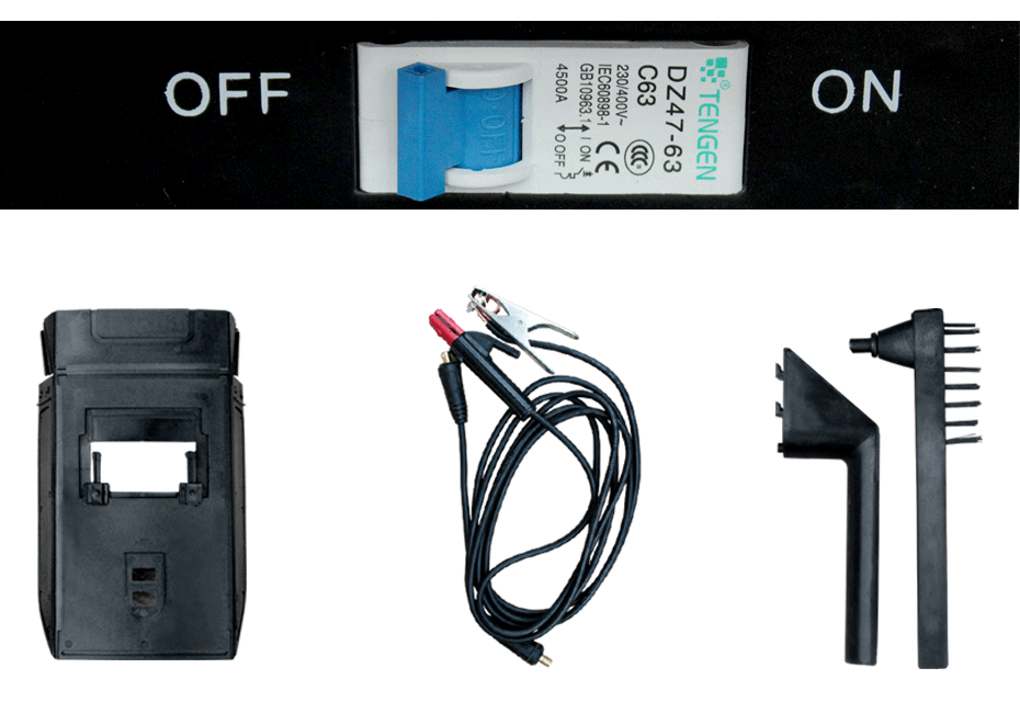 Phụ kiện kèm theo máy hàn bao gồm: mặt nạ hàn, chổi đánh xi, cổng đầu ra lớn, tất cả dây điều lõi đồng.